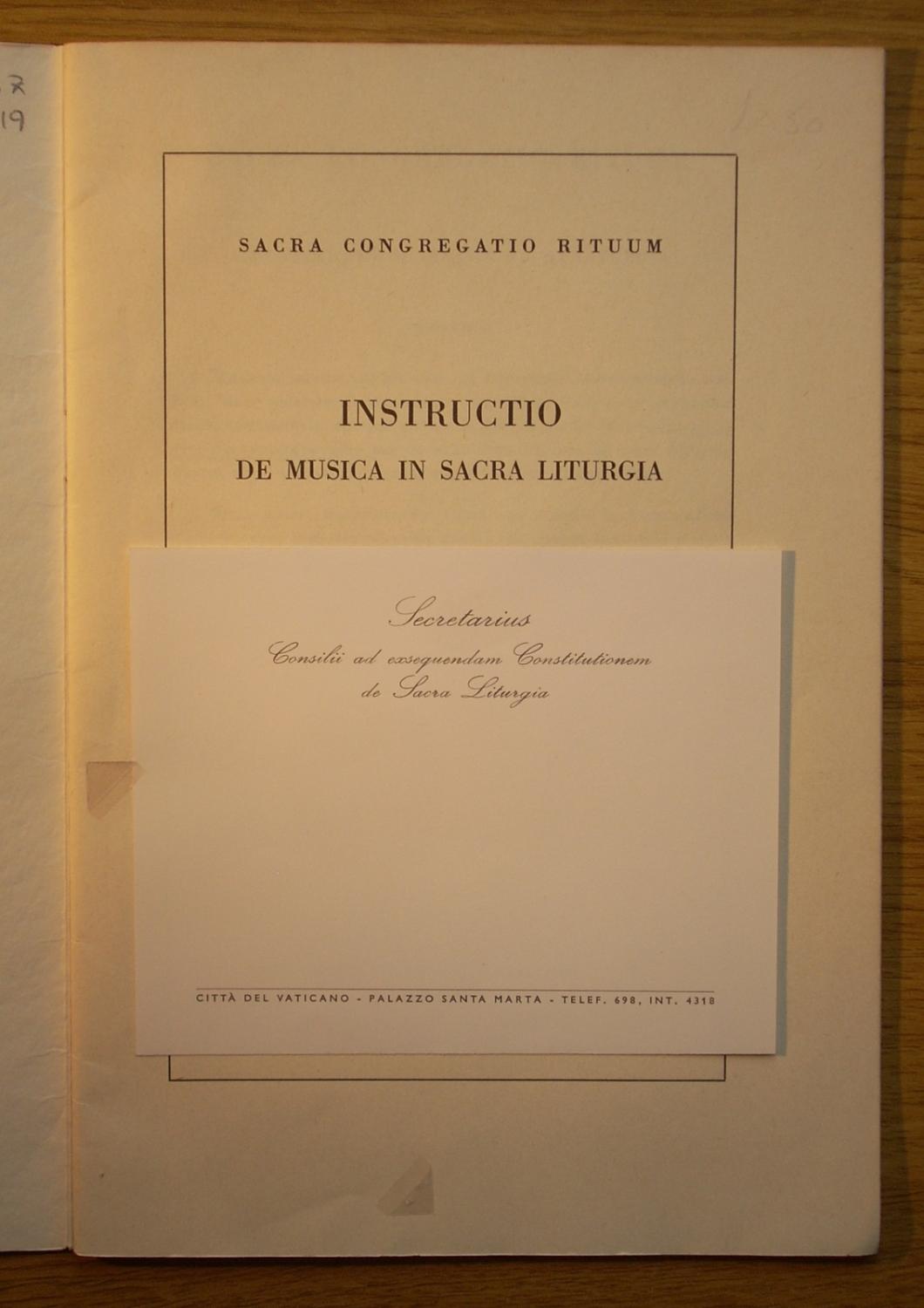 Sacra Congregatio Rituum: Instructio de Musica in Sacra Liturgia