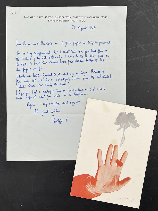 Written by the novelist Penelope Mortimer to the Yorkshire art collector Ronnie Duncan, a letter and postcard from June and August 1979. The post… Read more