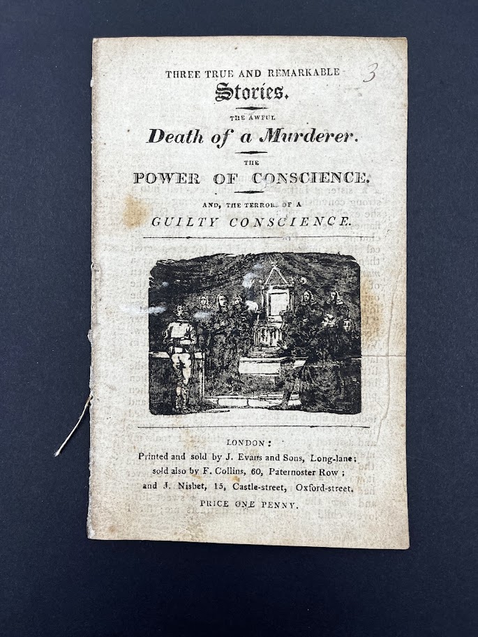 RARE CHAPBOOK: Three True and Remarkable Stories. The Awful Death of a Murderer. The Power of Conscience. Guilty Conscience