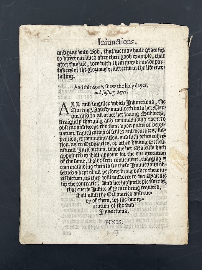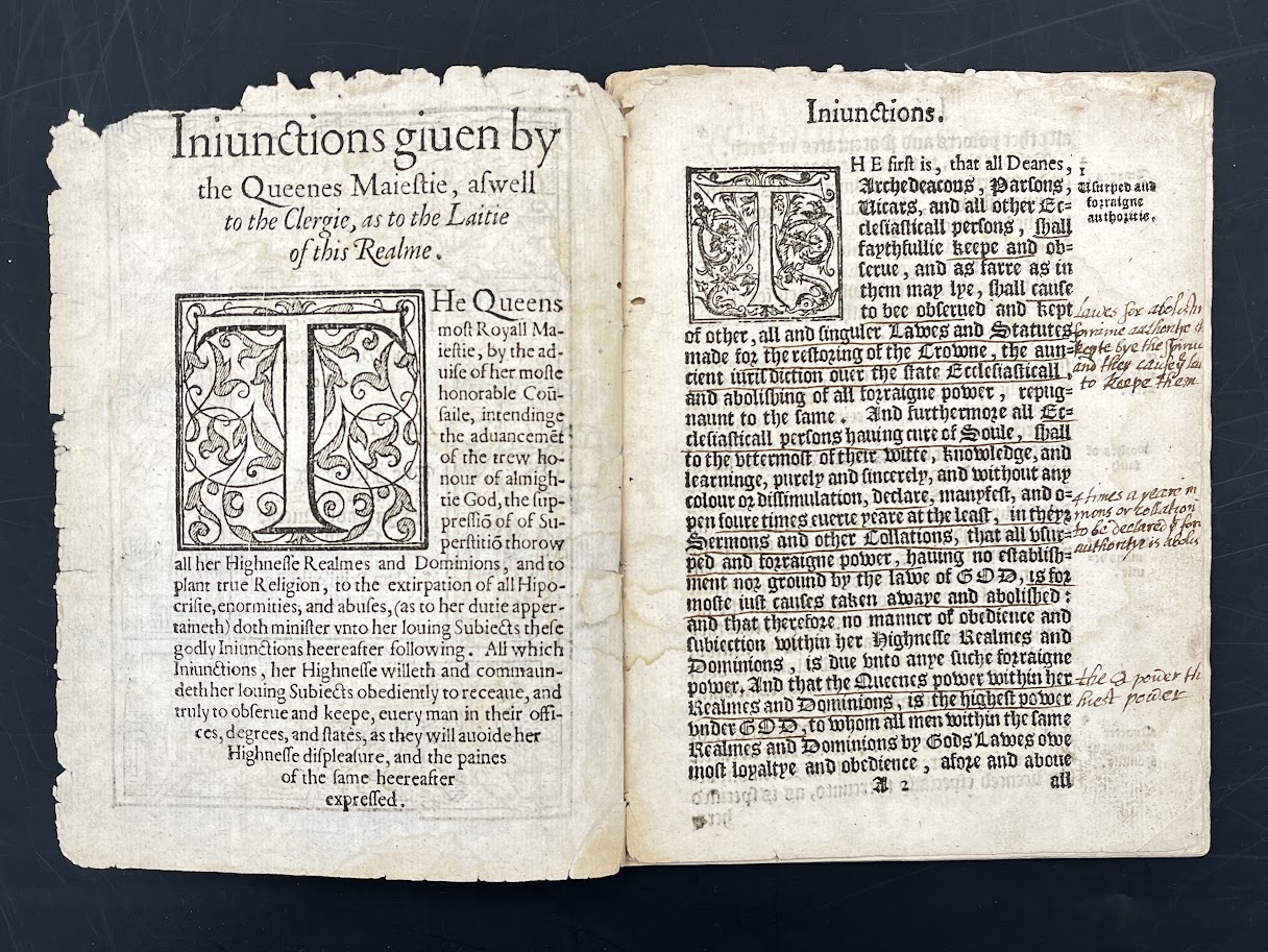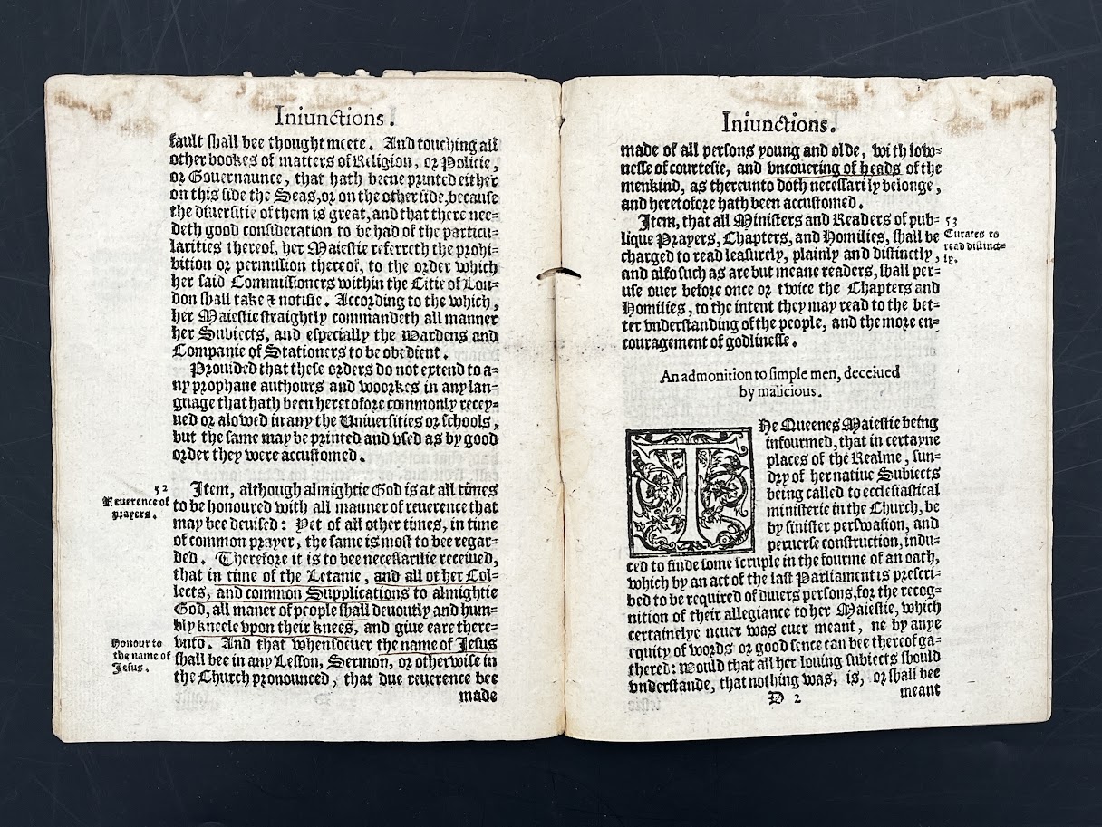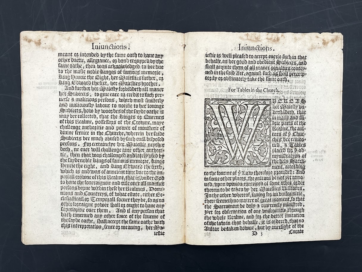 Injunctions Given by the Queenes Majestie. Anno Dom. 1559. The first yeere of the Raigne of our Soveraign Lady Queene Elizabeth. Cum privilegio Regiae Maiestatis.