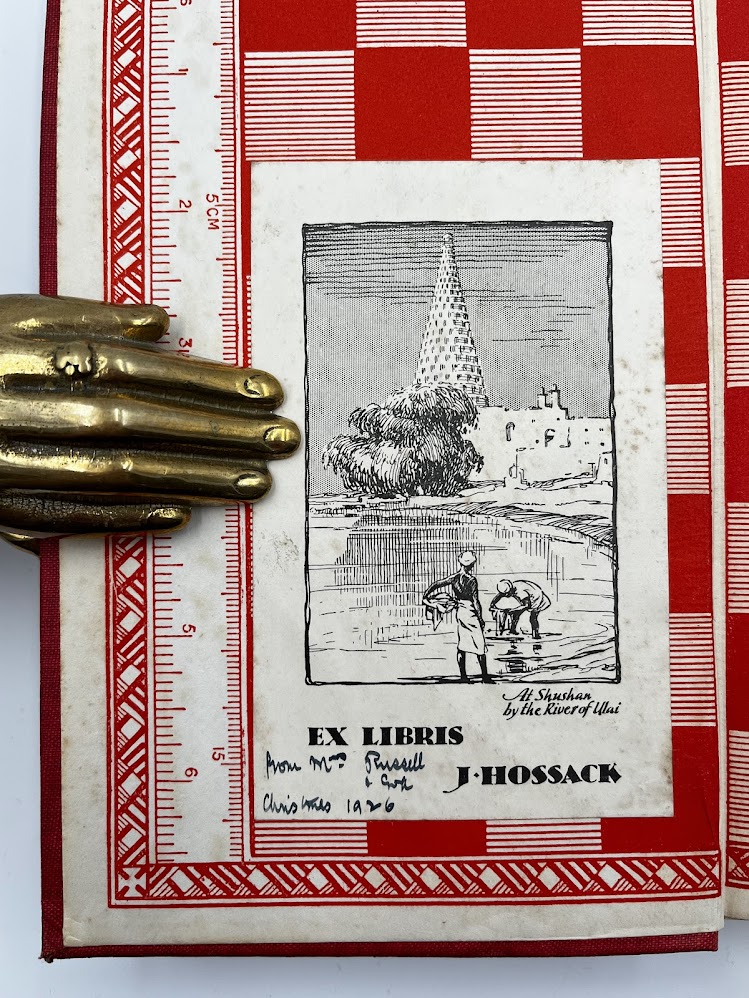 DESCRIPTION: Fourteenth impression. Publisher’s original red cloth with blind-stamped decoration to the upper board and titles in gilt to the spine, in dustwrapper. Bottom edge untrimmed. Decorative endpapers. A very good copy indeed, the binding square and firm. The contents with a contemporary previous owner’s bookplate (“J. Hossack”) to the front pastedown and some scattered dots of light foxing to the edges of the text block are otherwise in very good order and clean throughout. The lightly browned dustwrapper with a little chipping to the ends of the spine panel and to tips of the joints is otherwise also very good.