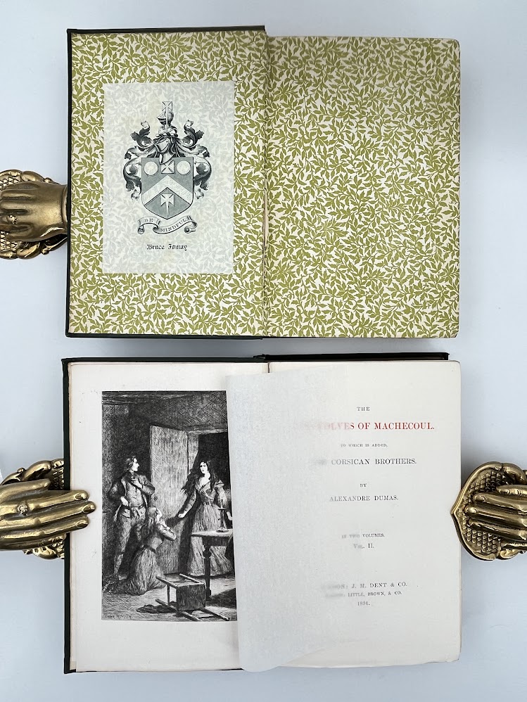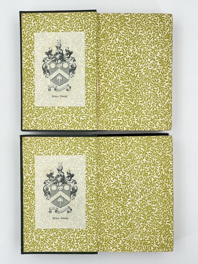 Appropriately enough for copies owned by a trans-Atlantic shipping magnate this edition is a joint publication between J M Dent in London and Little Brown in New York. Bound in fine green cloth with gilt decoration and fleur de lys to the spine, top edge gilt; leafy endpapers on which is Bruce Ismay’s armorial bookplate in both volumes. Slight cracking to paper over inner hinge of Vol I and a very little spine lean. Otherwise both volumes are near fine, illustrations all present and both bindings bright and in excellent condition.