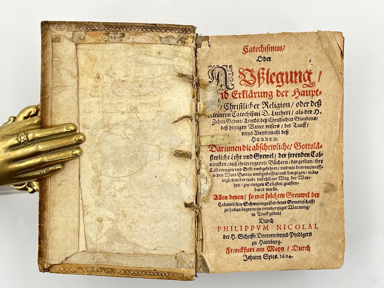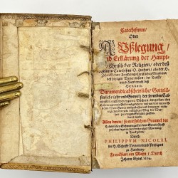 LETTERED GERMAN RENAISSANCE BINDING Catechismus, oder Auslegung, unnd Erklarung der Hauptstuck Christlicher Religion oder dess Kleinern Catechismi D. Lutheri