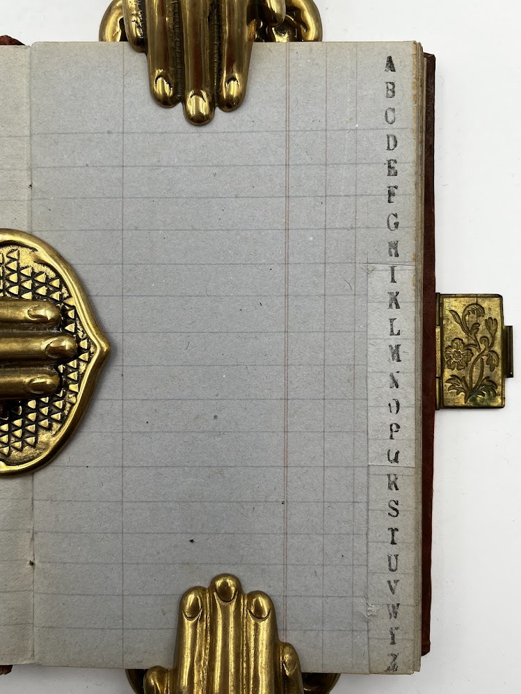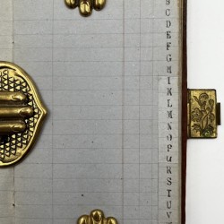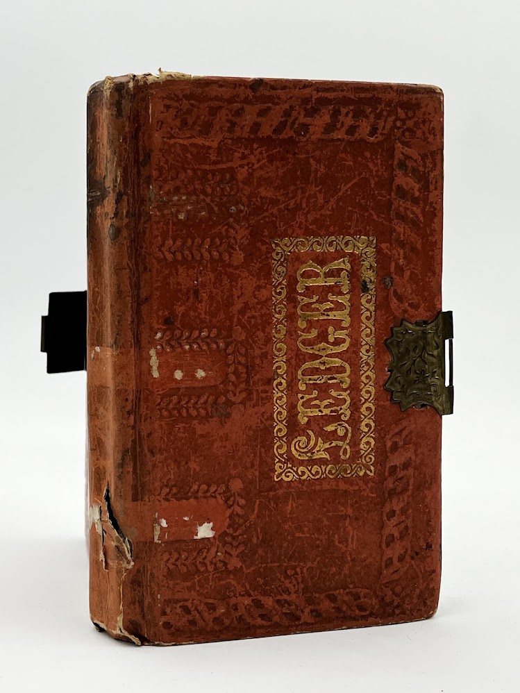 A small, good looking blank ledger in distinctive orange/tan embossed paper boards with the word ledger prominently displayed to the upper board… Read more
