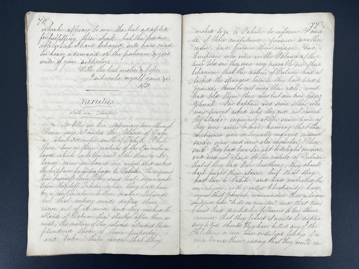 In keeping with the Braithwaite’s transatlantic links, alongside this essay (pp69-65 - c1000 words) there is an extract from William Ellis’s Missionary Tour Through Hawaii (1823) dealing with his visit to the Island of Tabuai and the journal closes with Queries, a poem and an injunction to the reader that ‘communications should be sent before the 20th of the month.’