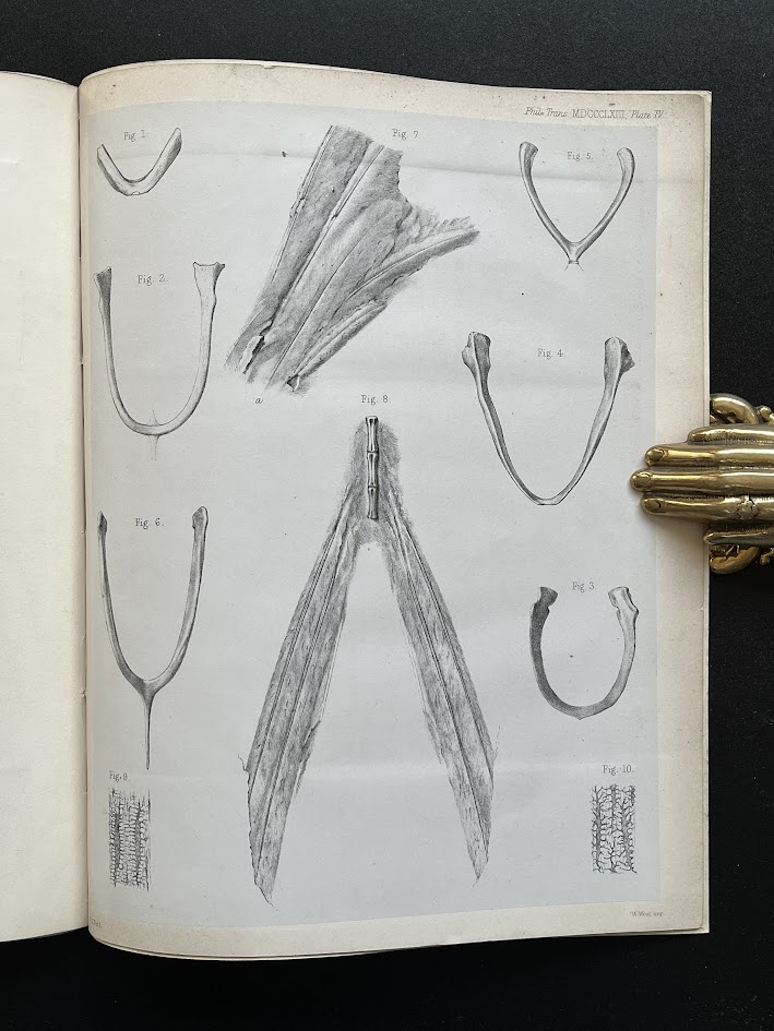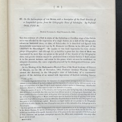from the Lithographic Stone of Solenhofen. In Philosophical Transactions, Vol. 153 (1863), pp. 33–47, 4 lithographic plates. Antique marble paper wrappers, recently bound. A near fine copy with the slightest spotting to a couple of pages only.
