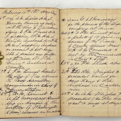 The diary proper begins 17th November 1885 when Parker 'Embarked on board H M Troops Ship Oronto' in Plymouth arriving a few weeks later 'Anchored at Hong Kong ships lying there Audacious Flagship... Commodore's Ship Daring Linnet Midge Espoir Ramble Gunboats.' Parker's entries tend to be short and to the point and on 6th January 'Linnets ship company pack bags and stow them in the lighter 2.25 Arrived to our respective ship...'