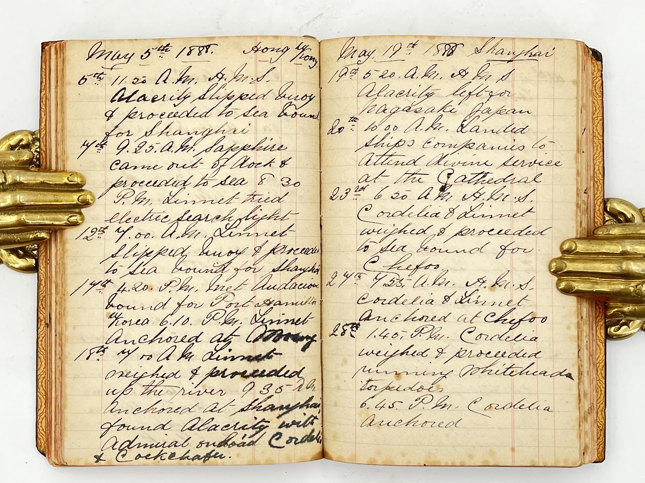 Diary of a young British officer with the China Squadron, based in Hong Kong and patrolling Chinese and Japanese waters between 1886-1889 to enforce the Pax Britannica. In the late 1880s the British navy’s China Squadron was the primary instrument of British imperial power in East Asia, protecting commercial interest and securing naval supremacy, especially against Russian expansion which is a repeated concern in Parker’s diary entries.