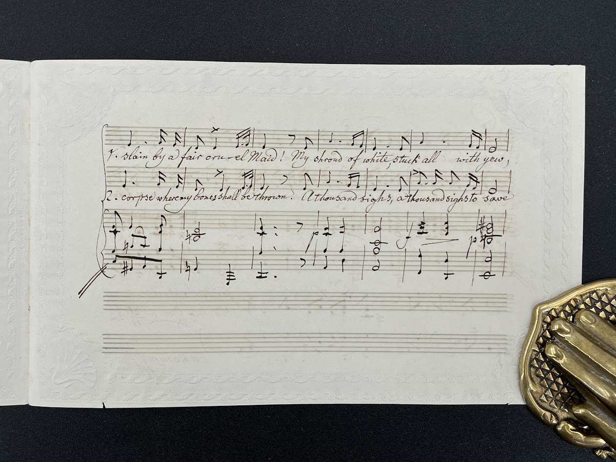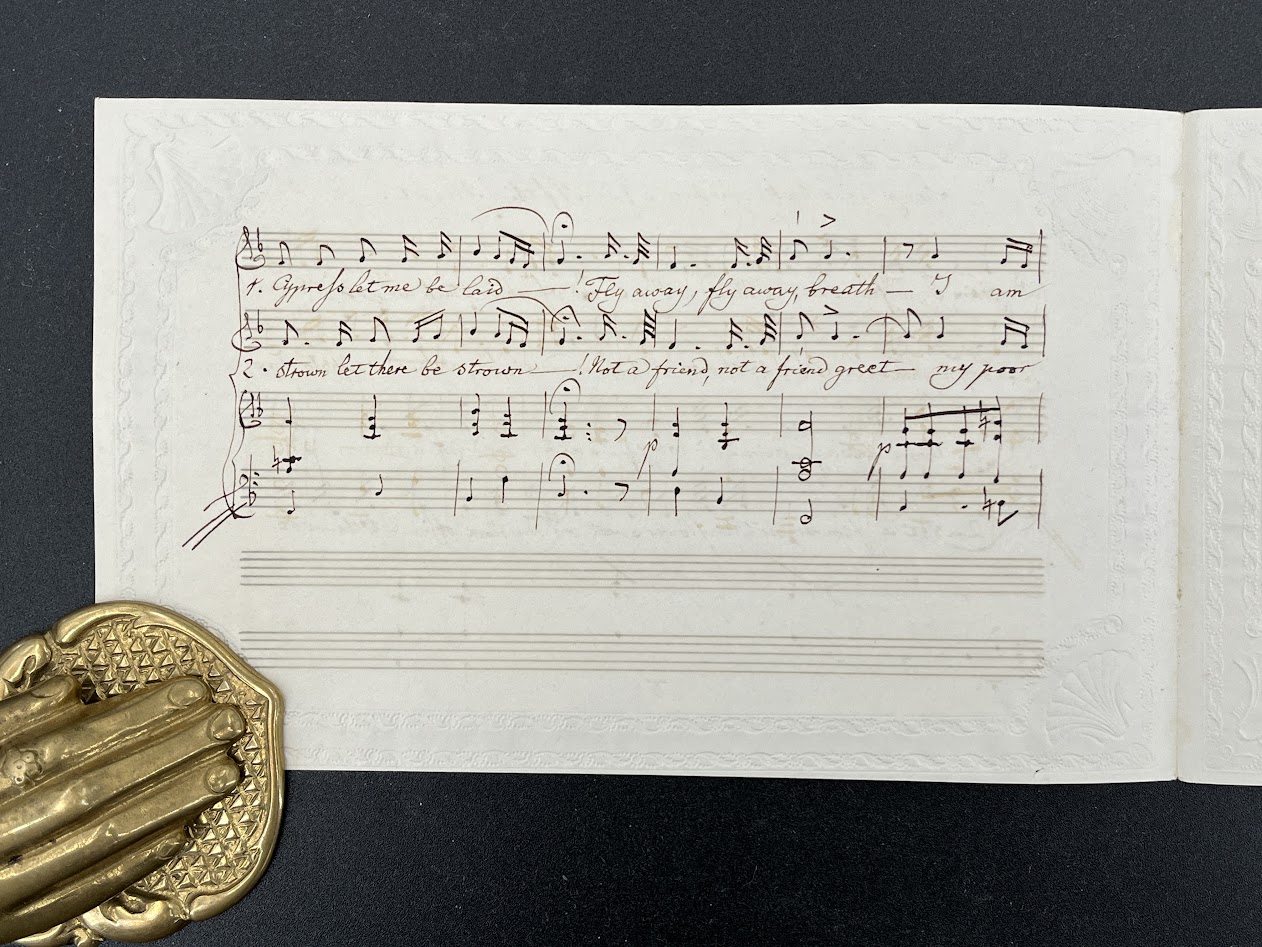 Four page setting of Feste’s song ‘Come Away, Death’ from Shakespeare’s Twelfth Night. Written over four oblong octavo pages (a bifolium extracte… Read more