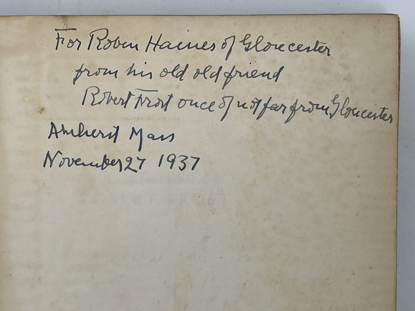Elaborately inscribed by Frost to an ‘old old friend’ from his time in England with the Dymock Poets in rural Gloucestershire just before the Fir… Read more