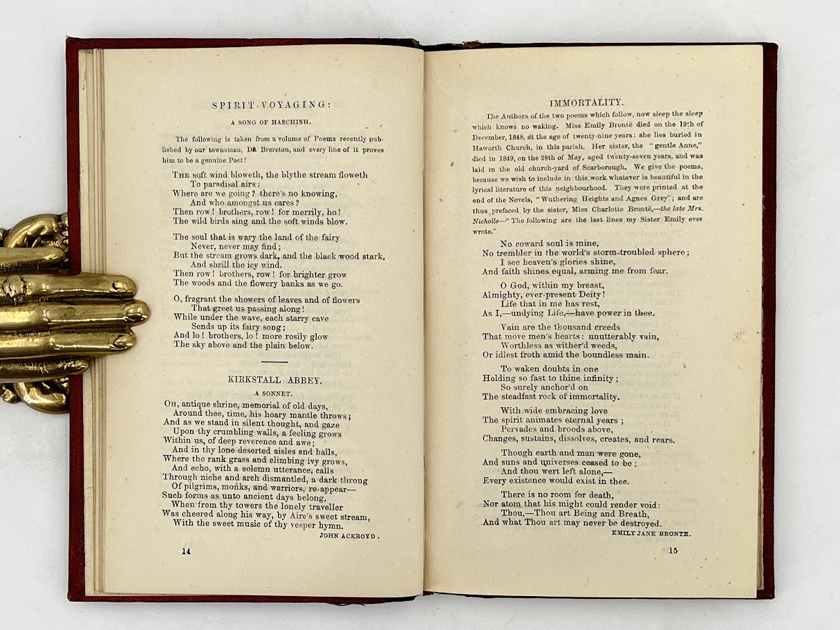 A lovely clean copy of this uncommon Yorkshire-published poetry anthology which contains two poems each by Anne and Emily Bronte, and a single po… Read more