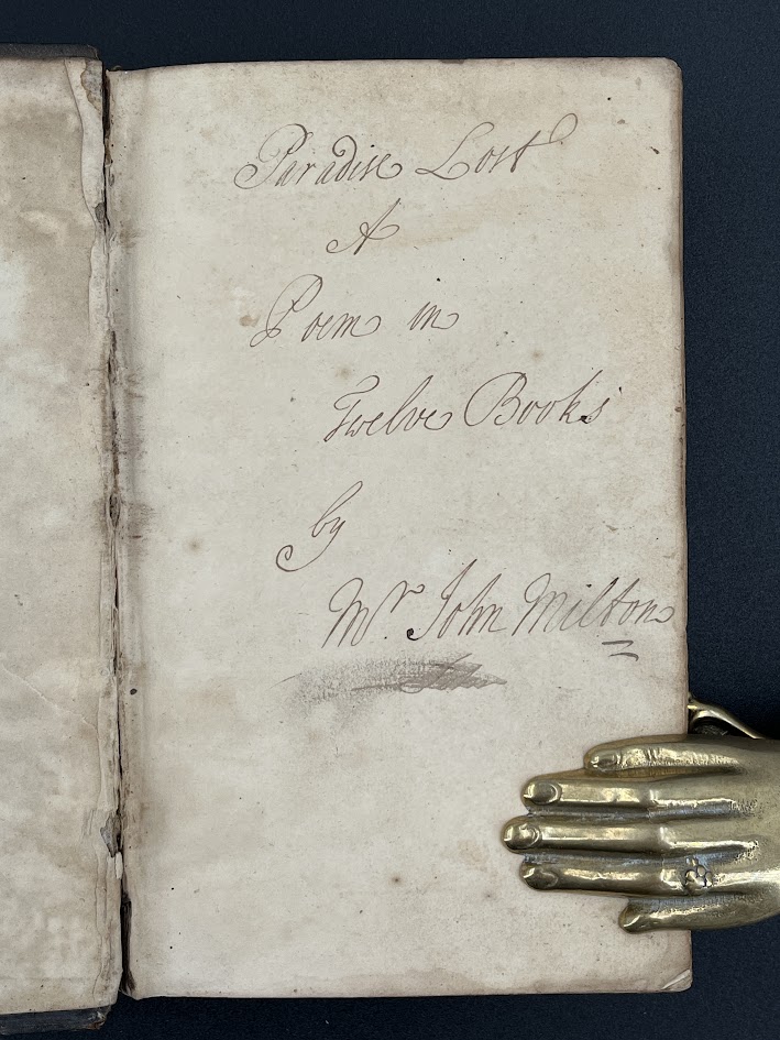 Octavo, panelled calf c 1710; faded gilt decoration to spine panels with some loss to lower backstrip and over hinges though the binding remains sound. Preliminaries lacking; manuscript title on the flyleaf: Paradise Lost. A Poem in Twelve Books by Mr John Milton - as per Tonson’s editions of this period.