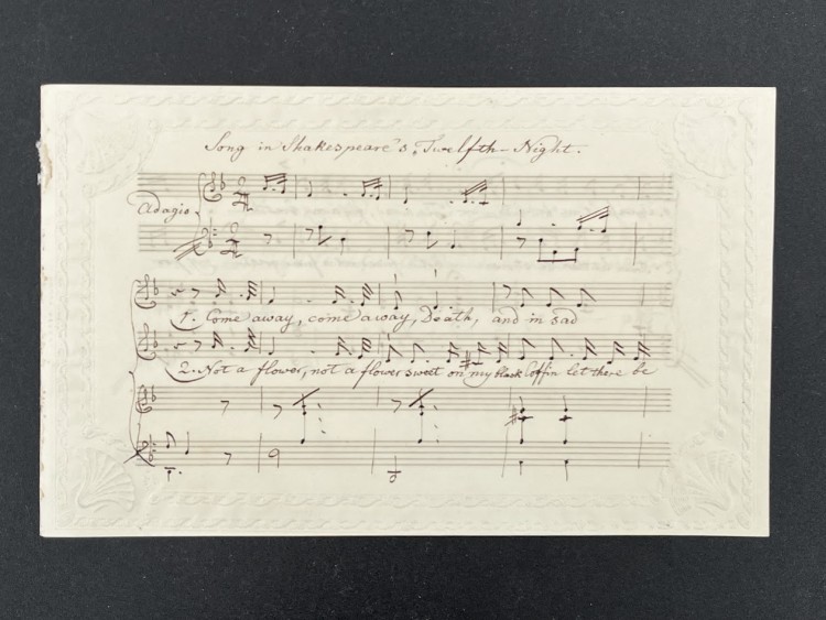AUTOGRAPH MUSIC MANUSCRIPT ‘Song in Shakespeare’s Twelfth Night’ — Sigismund von Neukomm [William Shakespeare] — 1832