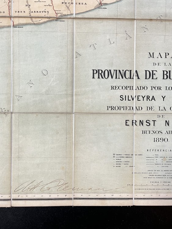 INSCRIBED BY THE WELSH/ ARGENTINIAN RAILWAY ENGINEER ARTHUR COLEMAN Mapa de la Provincia Buenos Aires Recopilado por los Ingeniores — Ernst Nolte; Silveira & Jorge Doclout [Arthur Coleman] — 1890