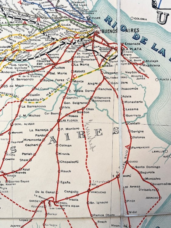 Engineering map of the Buenos Aires district owned and inscribed by the Welsh railway engineer Arthur - Arturo - Coleman who moved to Argentina to become a central figure in the construction of Argentina’s Great Southern Railway or FC Sud in the 1890s. Coleman (1868-1952), who has inscribed the tail of the map, helped develop cities in the desert, built bridges and tunnels, and went on to rub shoulders with Eva Peron. Later, Coleman wrote several books in Spanish on the railroads in Argentina an…… Read more