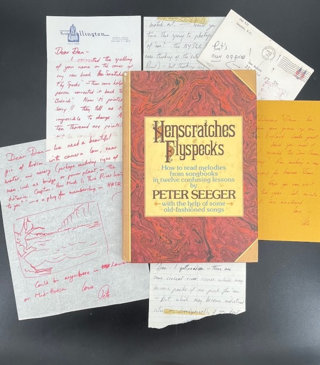 Pete Seeger in environmental mode, writing to his friend and long term artistic collaborator the photographer Dan Budnik, who took the portrait of Seeger that appears on the lower panel of the book’s dustjacket. Four letters to Budnik from Pete Seeger are laid into the book, two concerning Seeger’s advocacy for ‘some crucial river scenes which may become parks if we push for ‘em - but which may become industrial sites or developments, if we don’t watch out. Would you have time this spring to pho…… Read more