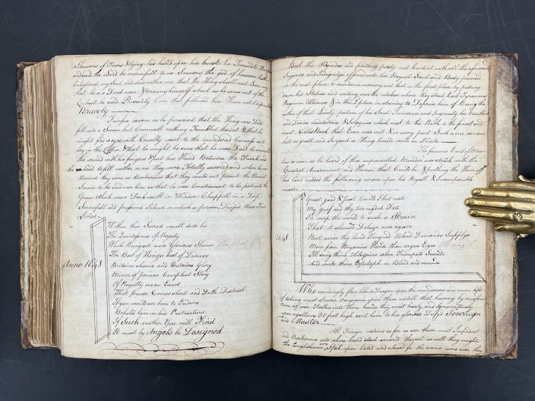A collection of English Rebellion narratives owned by one of George Washington’s fellow commanders in the French and Indian War, the Scots army officer and politician Archibald Montgomerie, who raised the 77th Foot Regiment of Highlanders and led them alongside Washington’s Virginia Regiment in the capture of Fort Duquesne in 1758. Going back another half century, this volume contains an uncommon printed account of the execution of the Duke of Monmouth on Tower-Hill in 1685 alongside four pamphl…… Read more